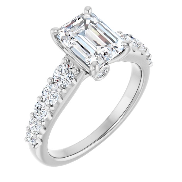 14K White 7x5 mm Emerald 3/4 CTW Natural Diamond Semi-Set Engagement Ring