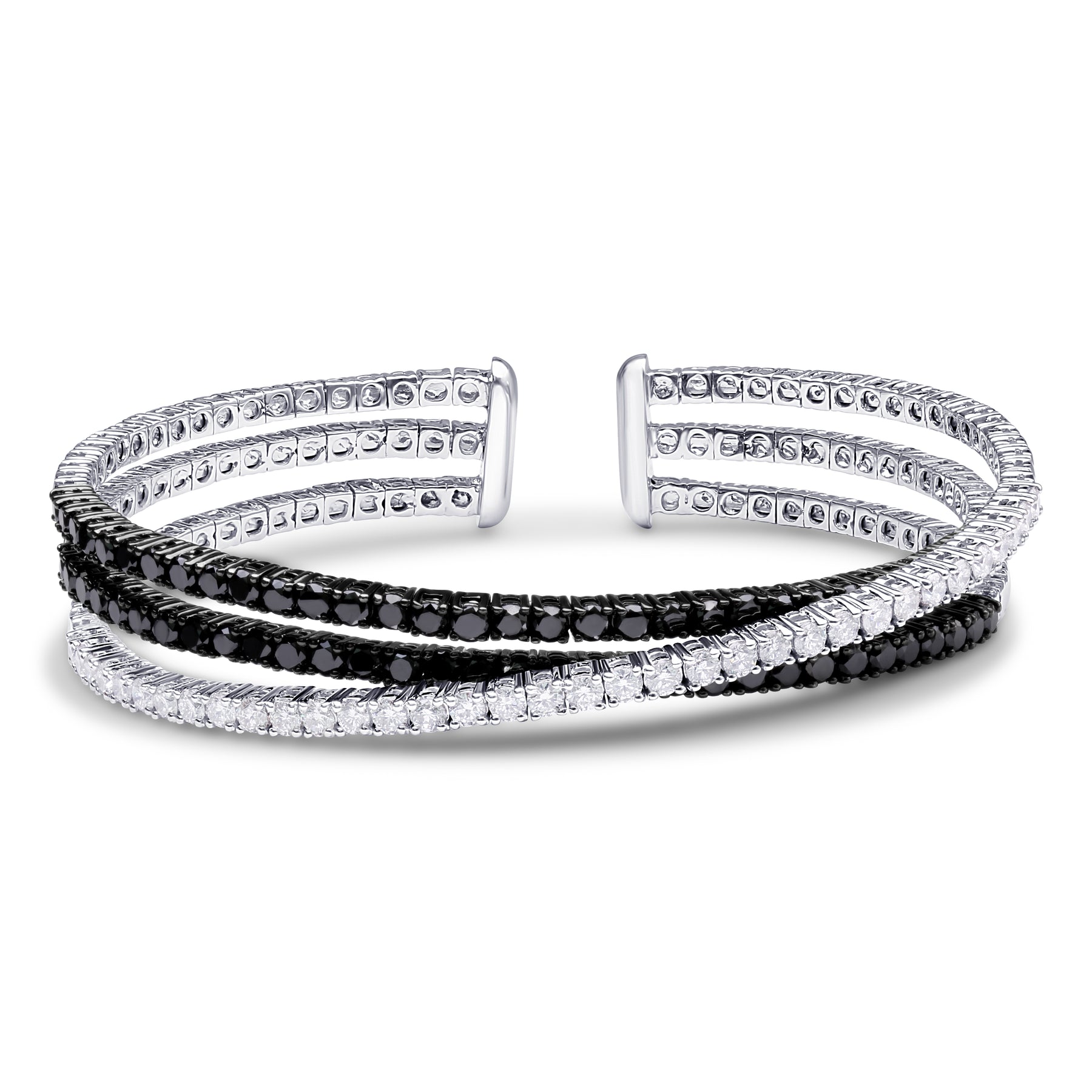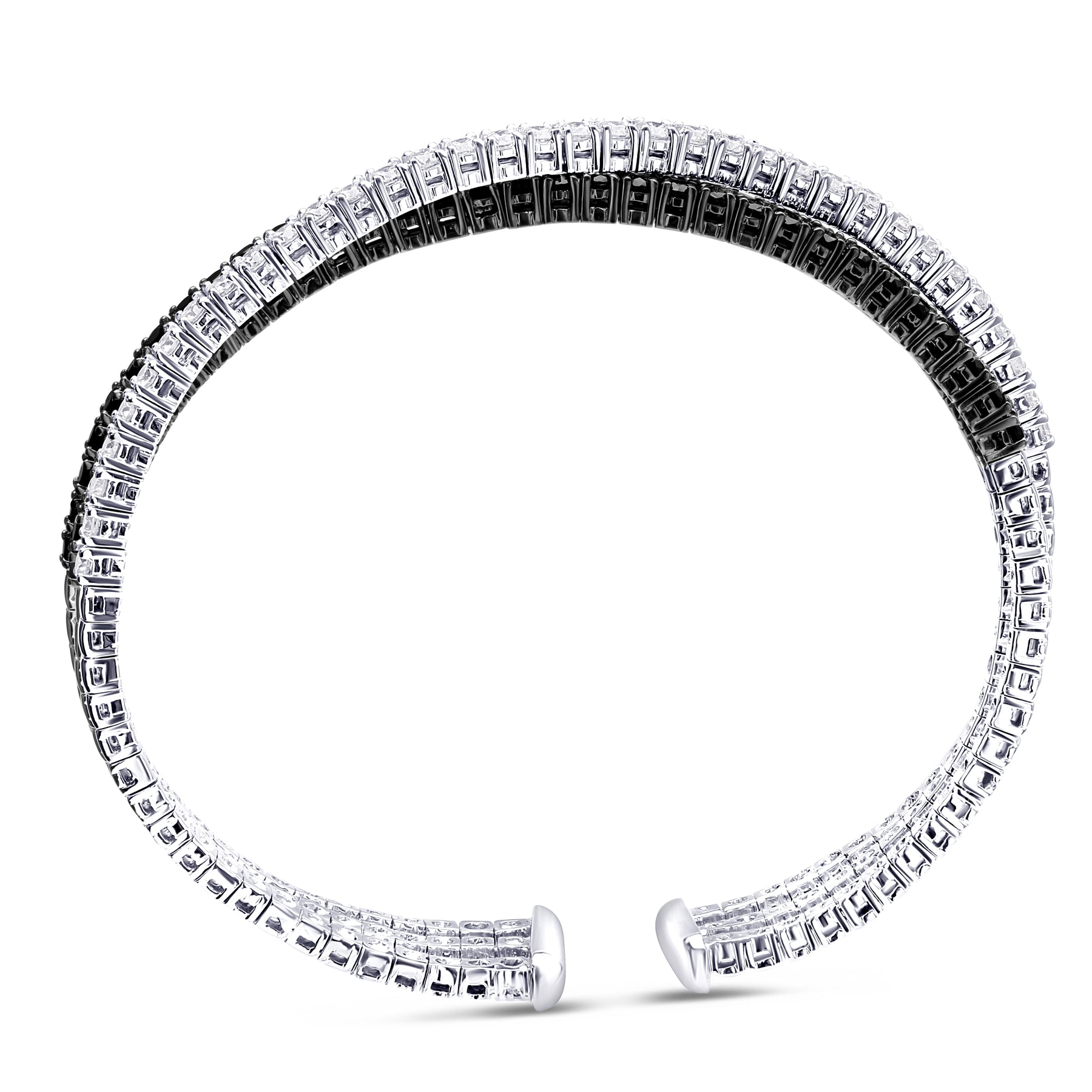 Discover the luxurious beauty of diamonds with a stunning combination of 18K white and black gold. Adorned with 1.50 carats of round brilliant cut diamonds and 3.50 carats of striking black diamonds, this bangle is the perfect accessory to elevate any outfit. Shine bright and stand out with this unique and elegant piece.