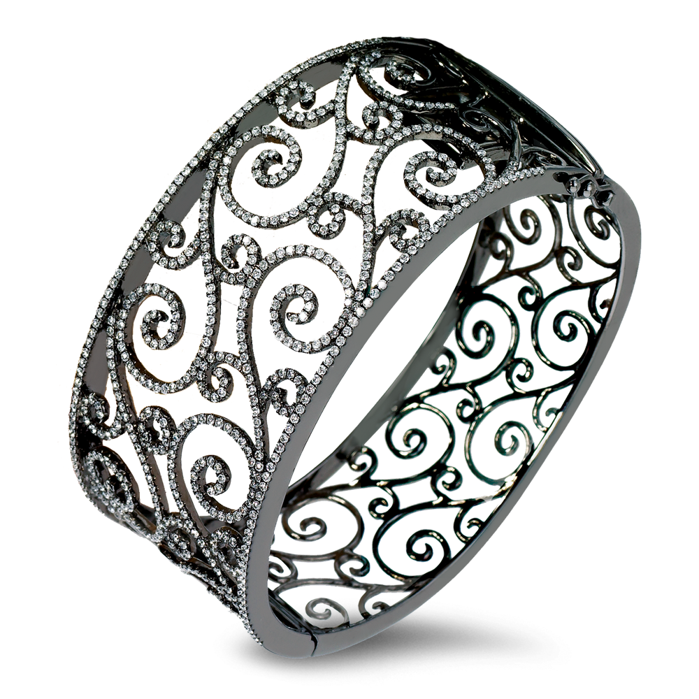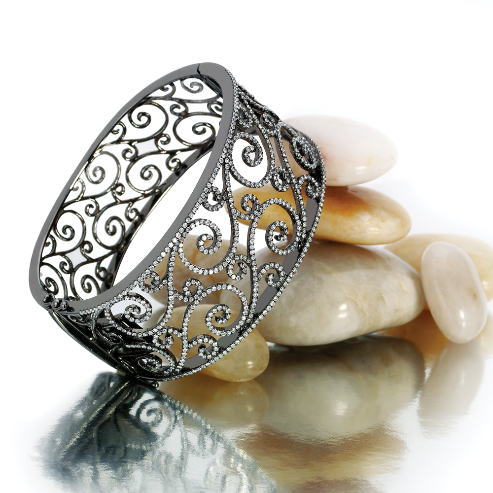 Delicate 18K gold lacey diamond bangle