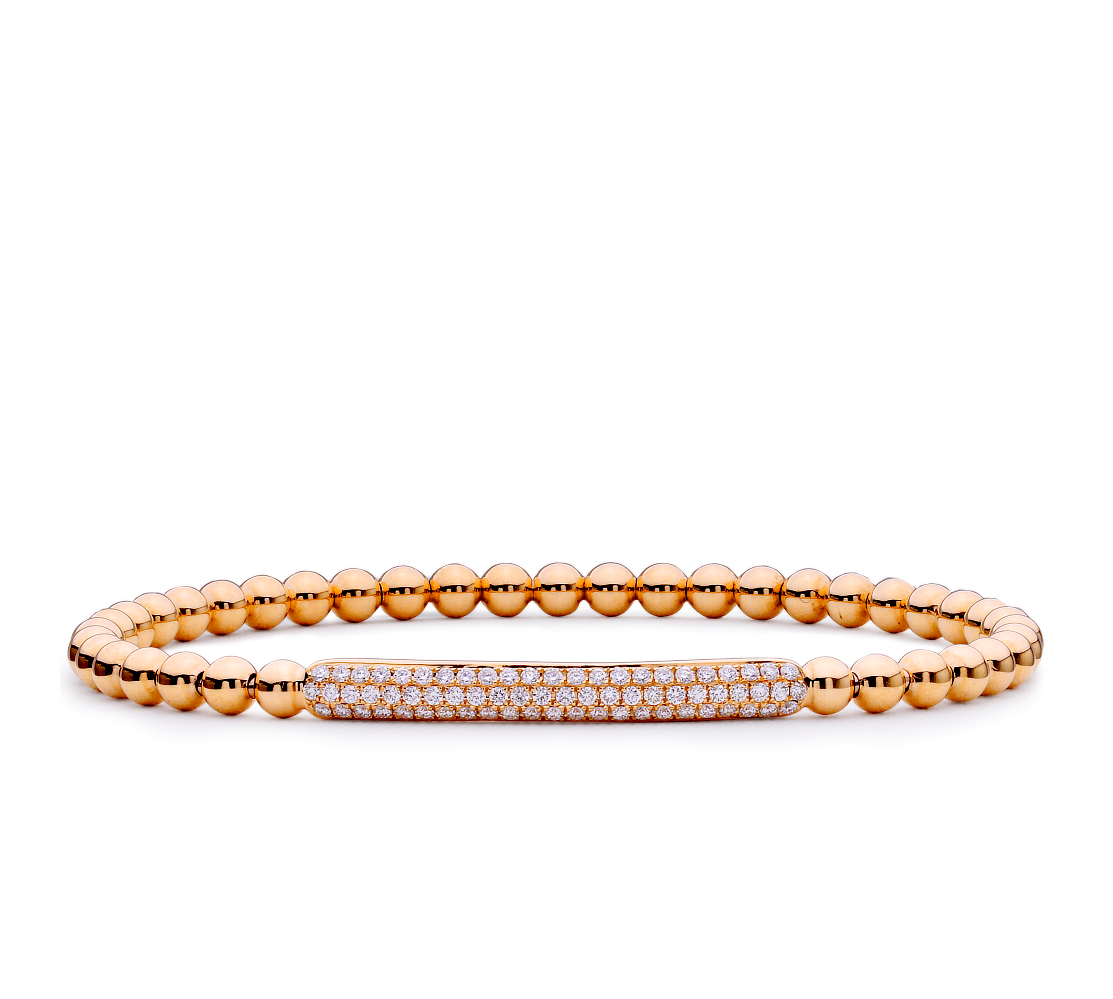 Expertly crafted from 18K gold, this stretch bead bracelet is adorned with 0.57 CT round brilliant cut diamonds. Effortlessly elevate any outfit and add a touch of luxury with this stunning piece. Perfect for any occasion, this bracelet offers both style and sophistication.