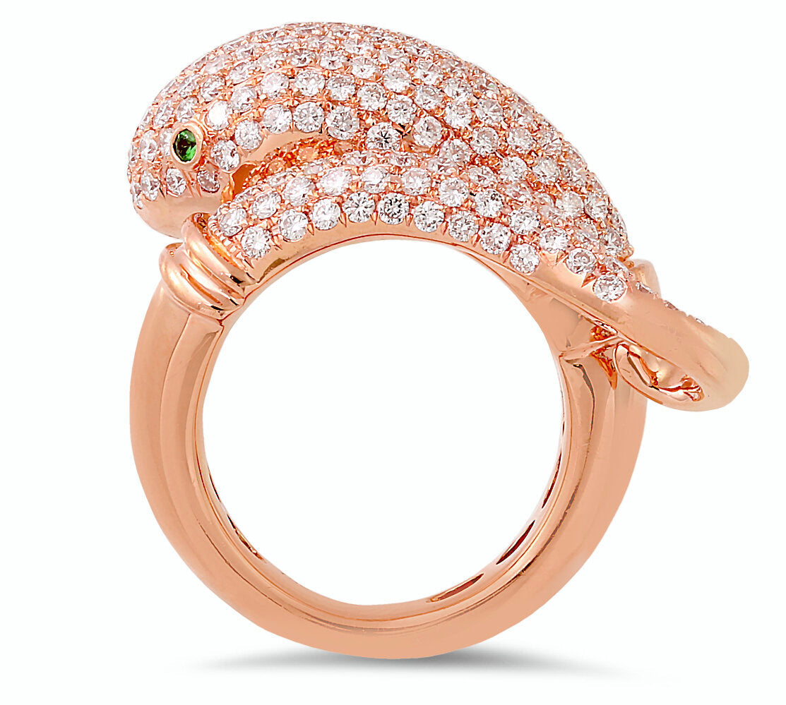 Looking for a stunning piece of jewelry that will catch everyone's eye? Look no further than our 18K rose gold diamond ring. The round brilliant cut diamonds and garnets add a touch of luxury and elegance, making this the perfect accessory for any special occasion.Â