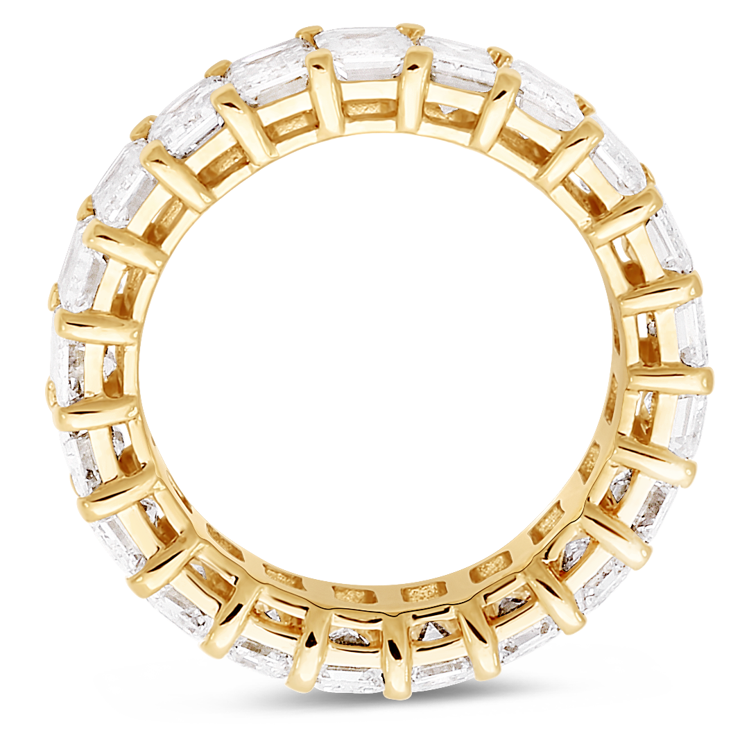 This luxuriously elegant eternity wedding band combines a timeless silhouette with modern design to create a unique piece featuring a total of 4.00 carat emerald cut diamonds intricately handcrafted into 18K gold setting for everyday elegance and glamour. Available in platinum or other gold colors upon request.