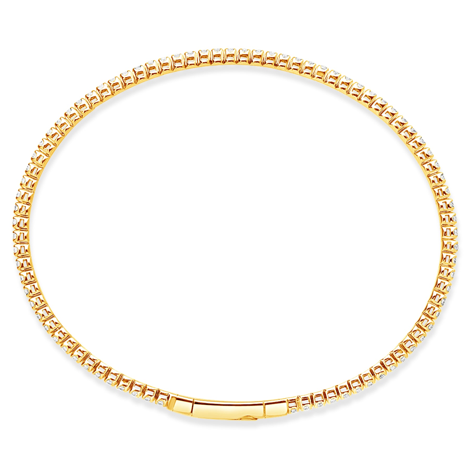 Experience the perfect marriage of innovation and luxury with our 14K Gold Flexible Diamond Bangle. This stunning piece features 0.80 carats of hand-selected round brilliant-cut diamonds set in a series of elegant, high-polish stations. Engineered with a proprietary flexible core, this bangle offers effortless wearability, expanding slightly to glide over the hand and snapping back to a secure, tailored fit on the wrist.
