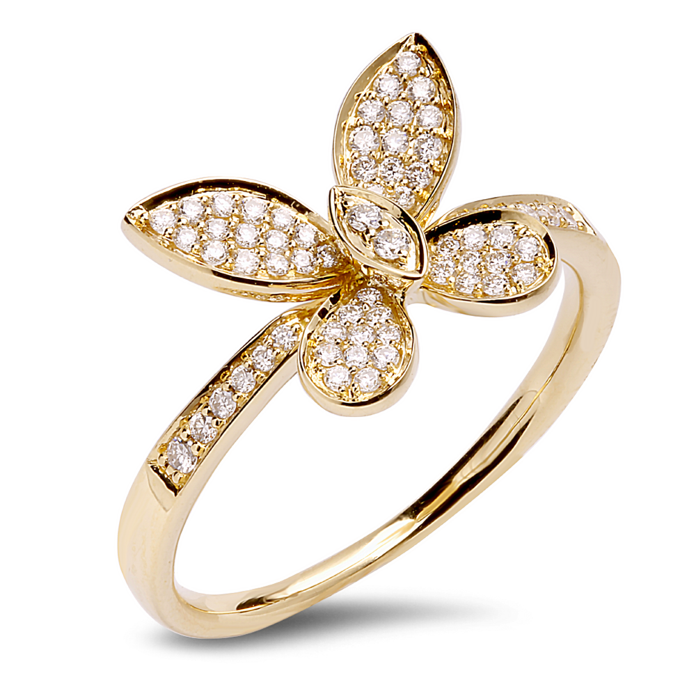 18K yellow butterfly gold diamond ring - SKU#: 31956