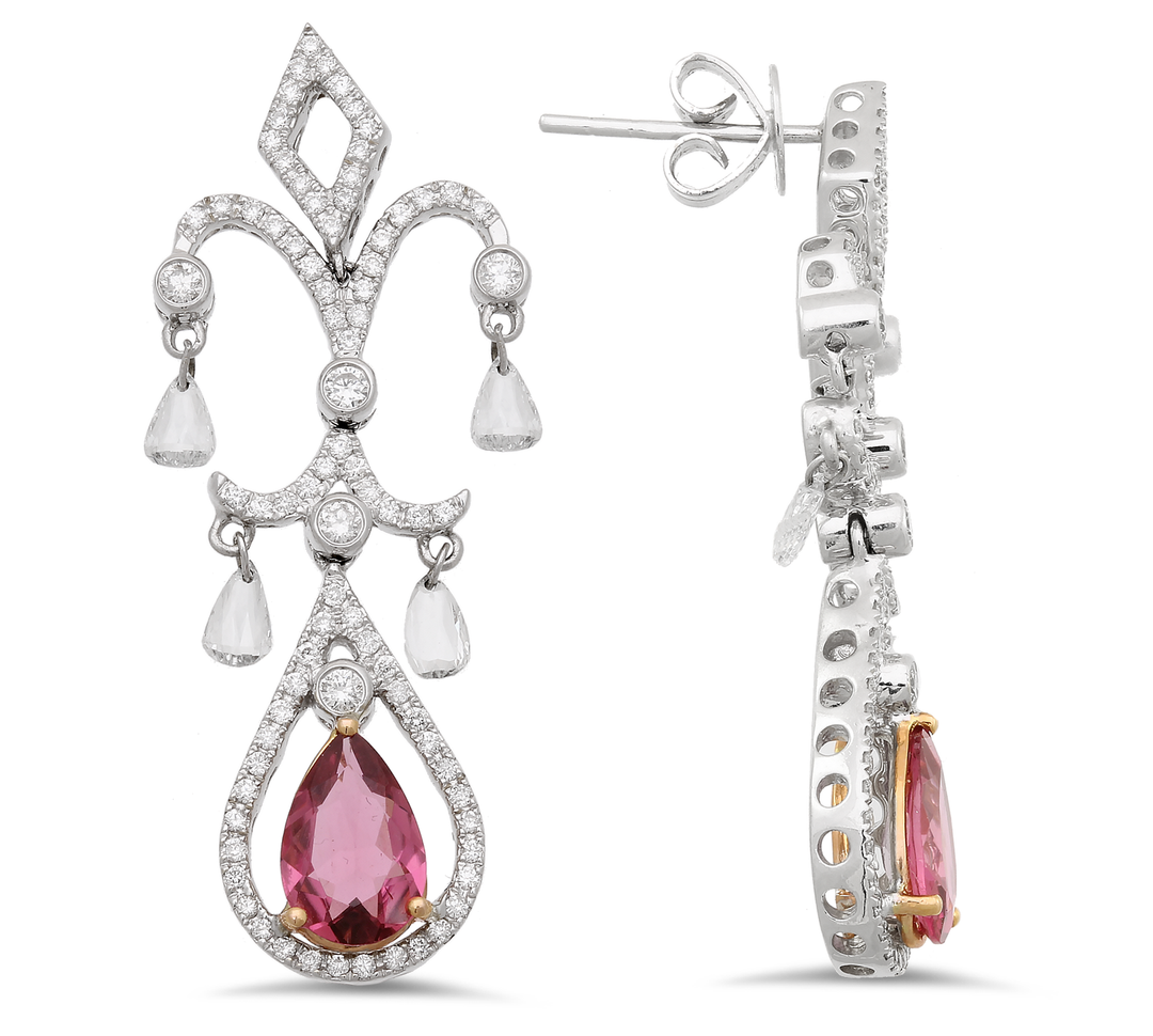 18K tri-tone gold and diamond earrings - SKU#: 17167
