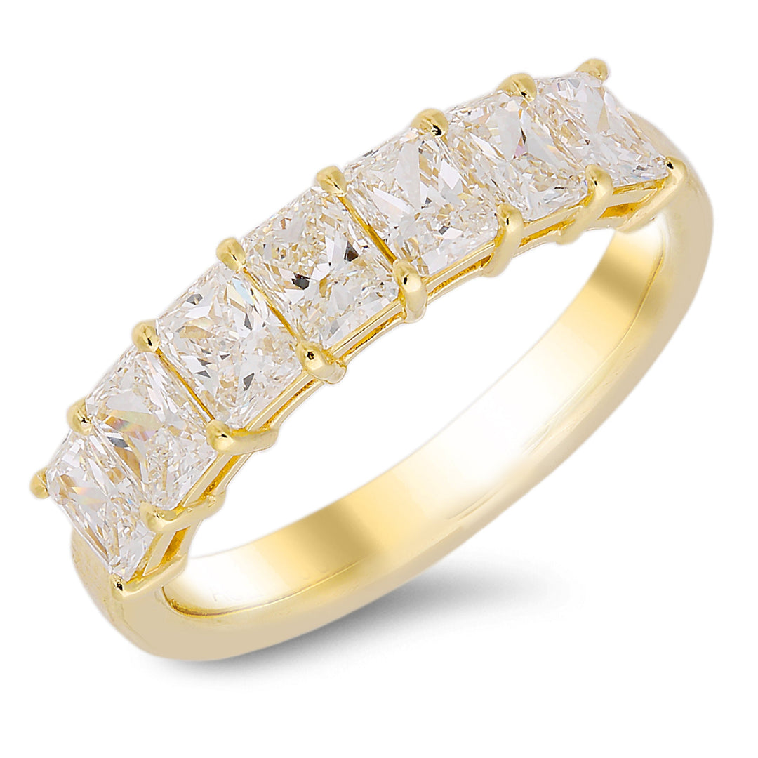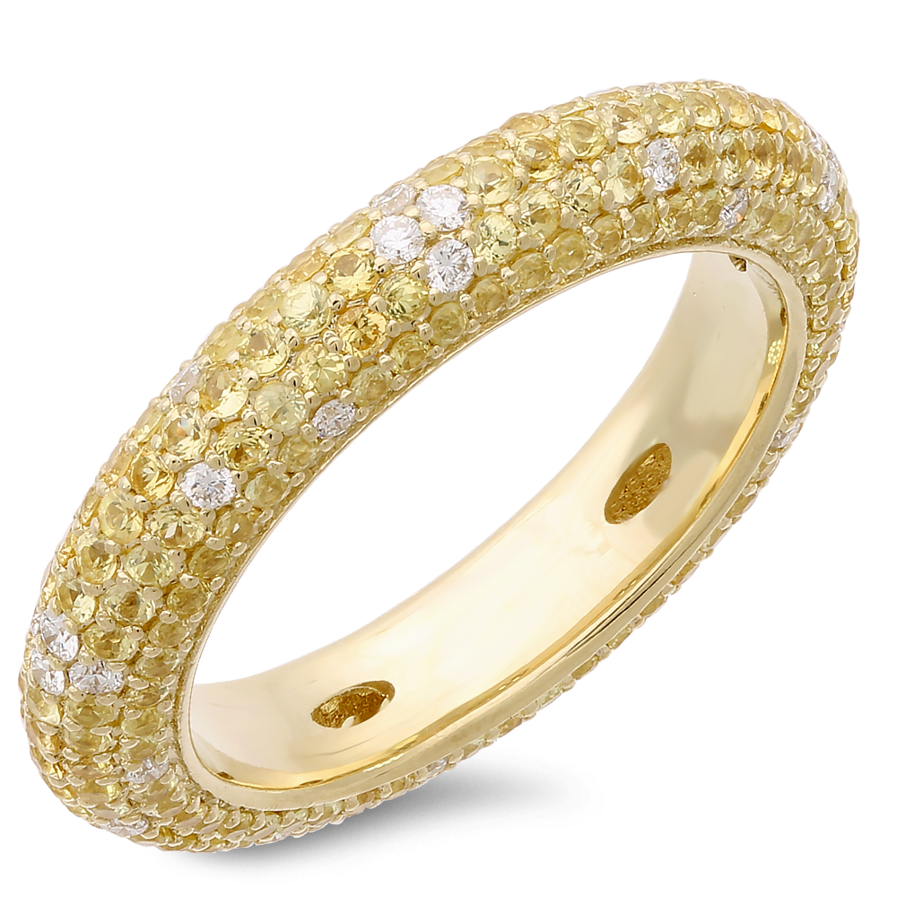 Sapphires and diamonds in 18K yellow gold form a stunning eternity band