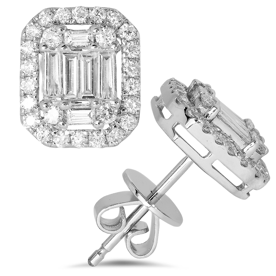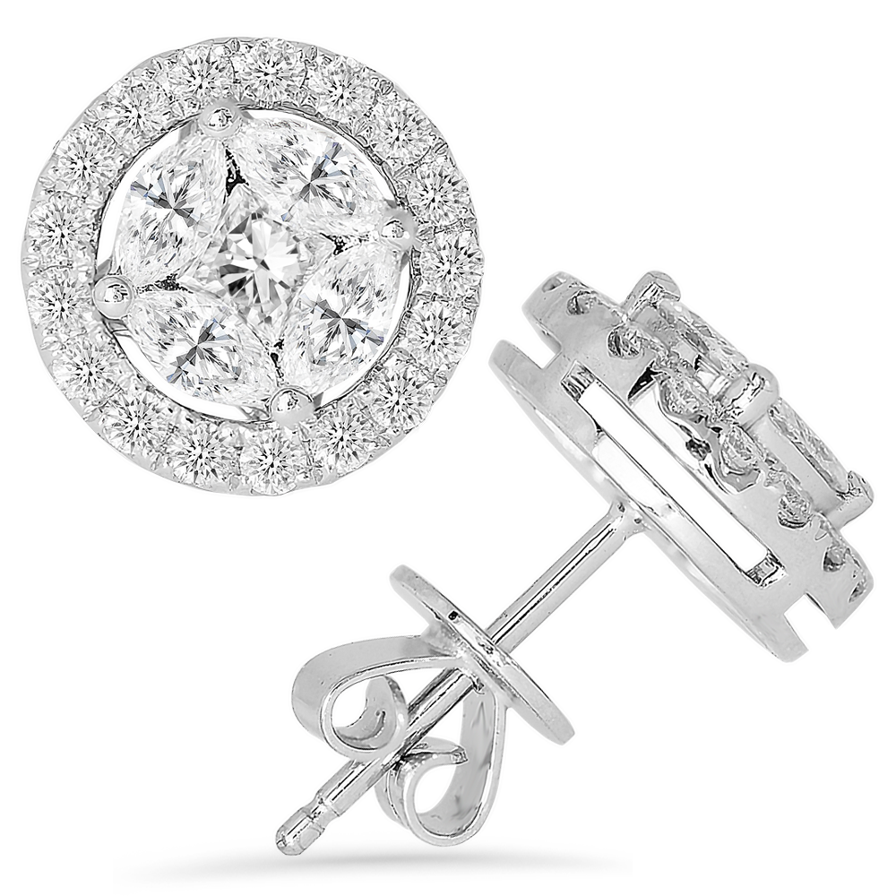 18K white gold stud earrings illusion setting - SKU#: 31224