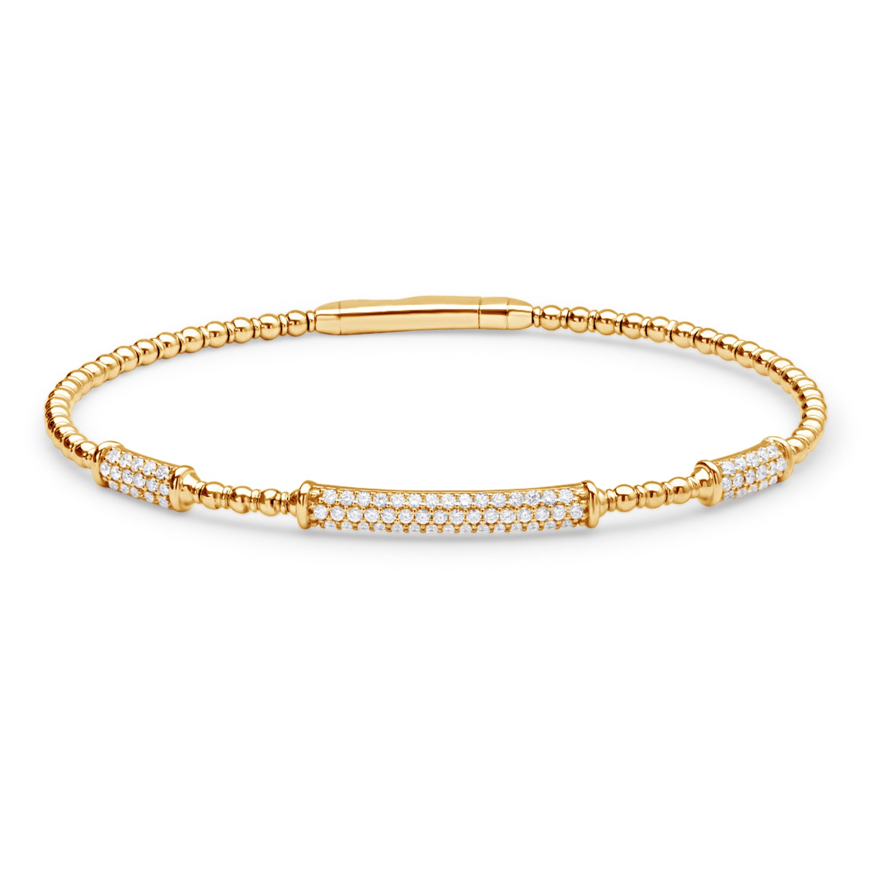 Perfect for layering or wearing on its own, this 14K yellow gold diamond bracelet beautifully blends timeless elegance with modern sophistication. Crafted with 0.55 carats of brilliant, hand-set diamonds on a sleek and fluid gold chain, this luxurious bracelet offers dazzling sparkle and a radiant golden glow. A versatile and elegant gold diamond bracelet that elevates any look—ideal for both everyday wear and special occasions.
